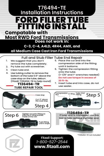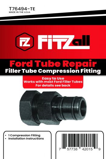 This Ford Transmission Filler tube repair end will allow you to use your damaged OEM tube (both one piece and stub end) and ensure optimal seal for improved leak resistance. This part has been treated to help resist rust as well as made solid to minimize movement of the tube at the case. With a simple Compression fitting style attachment repair your Ford filler tube in minutes with nothing but wrenches and a pipe cutting tool.